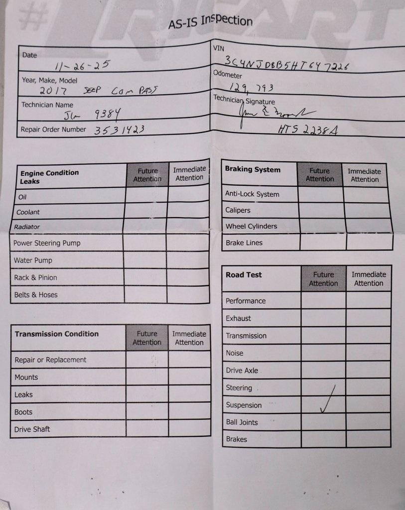 This 2017 Jeep Compass Latitude 4x4 delivers compact SUV versatility with confident four-wheel-drive capability and everyday practicality. Powered by a 2.4L I-4 MultiAir engine paired with an automatic transmission, it offers smooth, composed performance for daily driving and changing road conditions. The interior provides a comfortable, driver-focused cabin enhanced by the Customer Preferred Package 21J and Cold Weather Group, adding convenience and seasonal comfort, while 17-inch silver-painted aluminum wheels complete the look. Built with Jeep capability in mind, this Compass Latitude is available now at Ricart Automotive Used Car Factory.