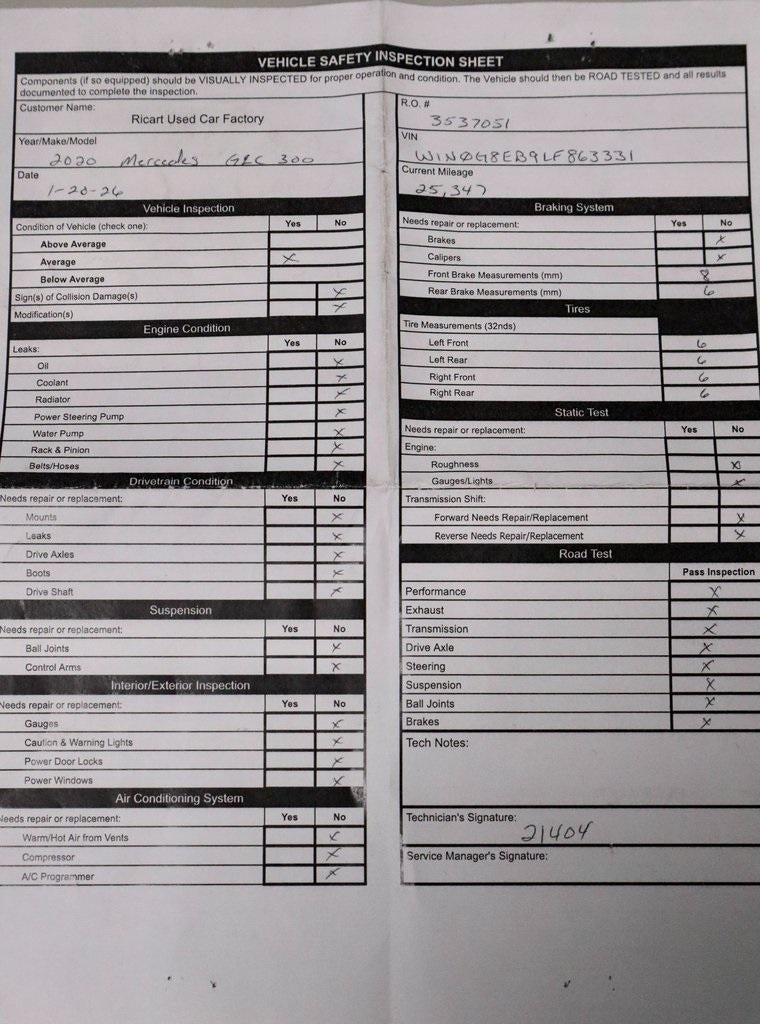 This 2020 Mercedes-Benz GLC 300 4MATIC blends refined luxury with confident all-wheel-drive capability, finished in Iridium Silver Metallic over Black MB-Tex upholstery. Elevated by the Premium Package and Parking Assistance Package, it features advanced driver support and intuitive tech, including Surround View and Active Parking Assist for stress-free maneuvering. The cabin is enhanced by a panoramic sunroof, heated front seats, and rich natural grain Grey Oak wood trim, creating a polished, comfortable driving environment. On the lot now at Ricart Automotive Used Car Factory.