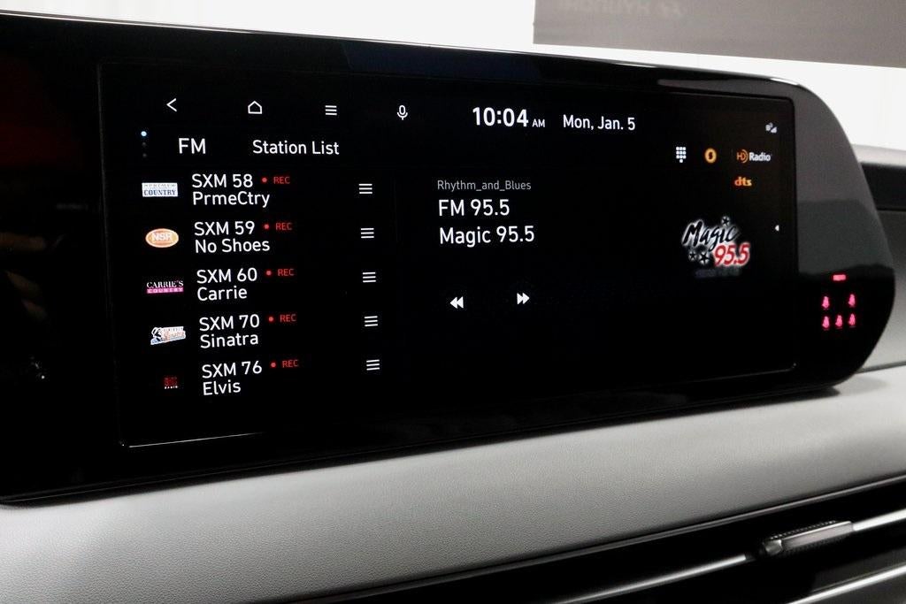 - Radio: AM/FM/MP3 Audio System -inc: 12.3" color touchscreen display, onboard navigation w/traffic flow including incident data via HD Radio (HERE), Over-the-Air (OTA) map updates, SiriusXM, USB, Android Auto and Apple CarPlay, dynamic voice recognition, rear seat quiet mode, Bluetooth® hands-free connectivity w/multiple device connection and Bluelink Connected Car System