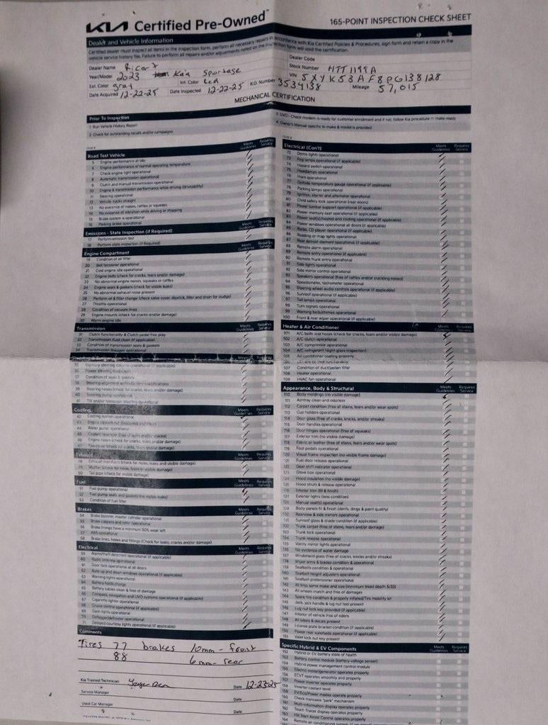 * 165 Point Inspection