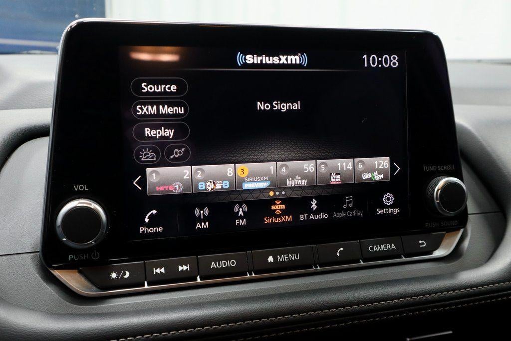 - Radio: AM/FM NissanConnect -inc: 6 speakers plus 2 tweeters, Apple CarPlay, Android Auto, 8" color touch screen display, Bluetooth®, 2 front USB type-C, Wi-Fi hotspot and NissanConnect Services powered by SiriusXM