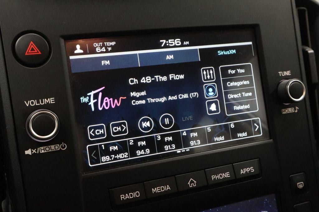 - Radio: Subaru Dual 7" Multimedia System -inc: AM/FM stereo, HD radio, multi-touch gesture high resolution display screen, voice activated controls, Bluetooth® audio streaming and hands-free phone connectivity, Bluetooth® hands-free SMS text messaging connectivity, iPod control capability, SiriusXM (4 months free trial/subscription required after), smartphone integration: wired Android Auto, wired Apple CarPlay, USB audio system update, audio system and Buletooth steering wheel control switches, 4 speakers, illuminated 3.5mm auxiliary input jack, illuminated USB A input charge port and roof mounted black antenna